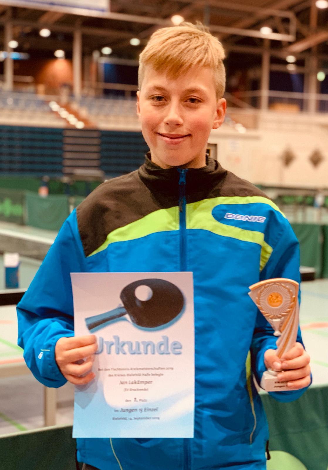 und Mixed (mit Melanie Menne/Oldentrup). Und Jan Lakämper gewinnt die Schüler A-Konkurrenz,