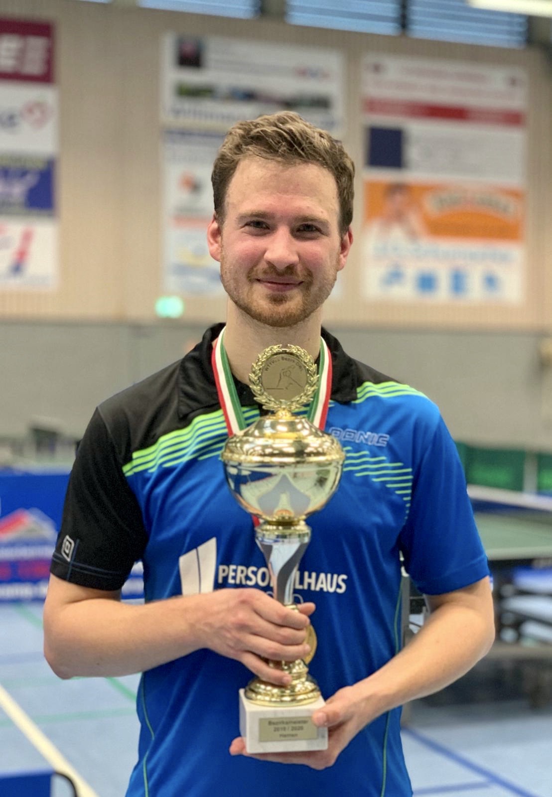 ![]() | In der Hauptrunde setzte er sich zuerst mit 3:0 (9, 3, 4) gegen Ulrich Watermann (TuS Bexterhagen) durch, im ¼ Finale dann ein 3:1 (7, -5, 5, 6) Sieg gegen Jonas Korf (ebenfalls TuS Bexterhagen). Im Halbfinale wartete Maximilian Schwerdt vom Verbandsligisten TuRa Elsen, gegen den er sich klar mit 3:0 (4, 4, 7) durchsetzte. In einem spannenden Finale mit vielen tollen Ballwechseln setzte er sich mit dem 3:2 Sieg (-9, 5, 5, -10, 9) dann gegen Nico Bohlmann durch – der beim DJK BW Avenwedde in der NRW-Liga Mannschaft ebenfalls an Brett 1 spielt. Ein Spiel auf Augenhöhe! Nach dem Verlust des 1. Satzes mit 9:11 holte sich Höppner die Sätze 2 + 3 jeweils mit 11:5. Im 4. Satz lag er auf einmal 0:7 zurück – konnte sich aber noch wieder auf 10:10 heran kämpfen, doch dann holte sich Bohlmann die nächsten beiden Punkte zum 12:10 Sieg. Und auch der 5. Satz war gespickt mit abwechslungsreichem sehenswerten Tischtennis, am Ende setzte sich dann Stefan Höppner mit 11:9 durch. Bezirksmeister 2019 !! Insgesamt ein tolles Finale!! |