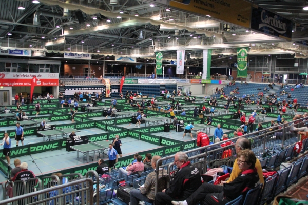 Deutsche Seniorenmeisterschaften 2014 – 02. bis 04. Mai 2013 – Ein Blick in die Halle Die Halle ist voll… Zuschauer verfolgen die spannenden Spiele Ein eingespieltes Team: Karin Kruse und Ulrich Watermann