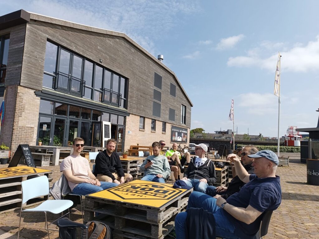 Frisch gestärkt durch das ein oder andere Fischbrötchen ging es dann wieder auf den Sattel und zum wesentlichen Programmpunkt – die Bundesliga. Gegen 14:45 Uhr war für uns ein großer Partyraum in an einem Hotel im Hinterzimmer einer urigen Kneipe reserviert. Der Meisterschaftskampf zwischen dem BVB und den Bayern war zu Spielbeginn noch offen und