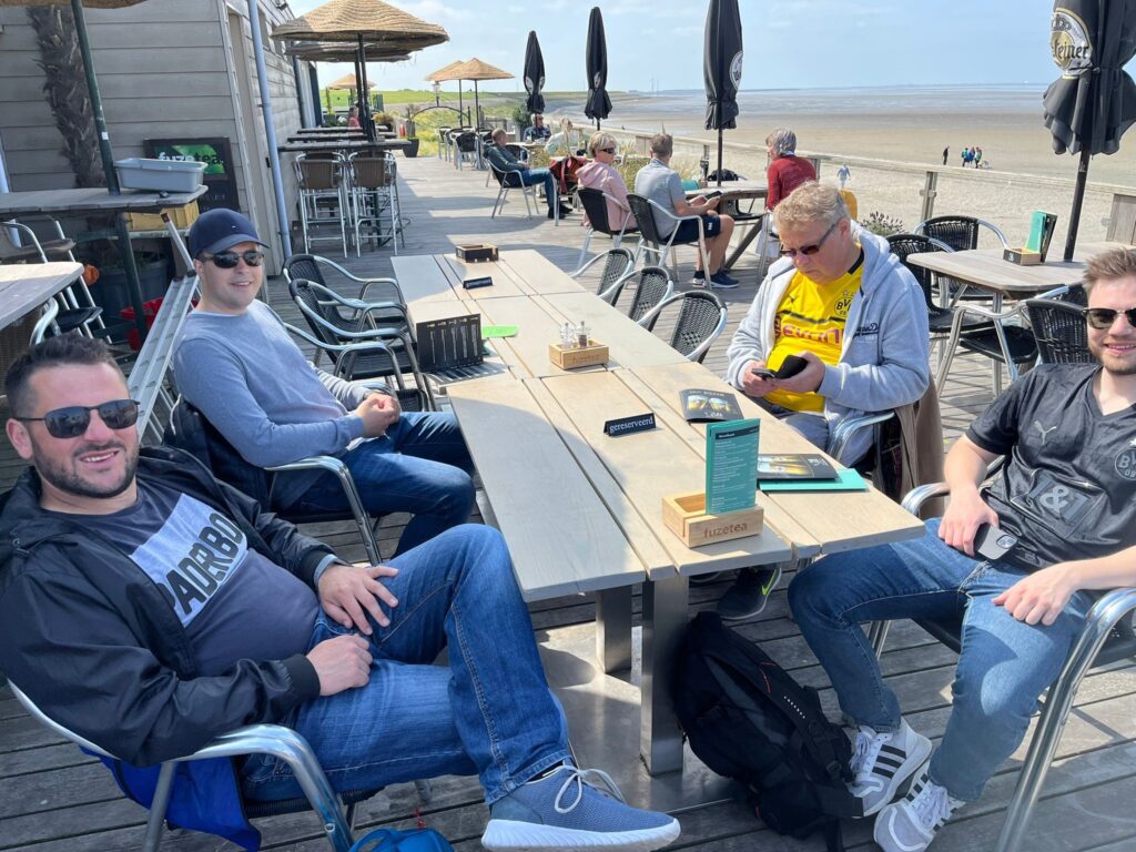 Nun konnten wir uns voll auf den Abschlussspieltag von Arminia konzentrieren. Das Resultat des Spiels wird aus Rücksicht vor Tränen und möglichen Wutausbrüchen nicht genannt. Den letzten Abend haben wir dann bei Bratwurst, Fleisch, Salat und Bier in einer gemeinschaftlichen Runde auf der Terrasse gemütlich auslaufen lassen. Nach dem sonntäglichen Frühstück haben sich 15 Mitreisende Richtung Heimat verabschiedet, während 7 Teamkameraden einen weiteren Tag in Friesland verbrachten.